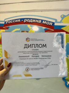 Никишина Ариадна стала призёром регионального очного этапа Российской психолого-педагогической олимпиады школьников имени К.Д. Ушинского