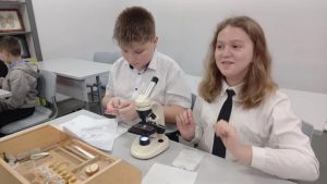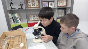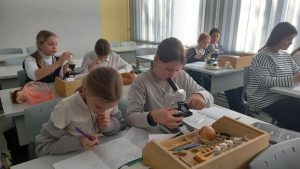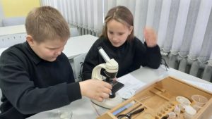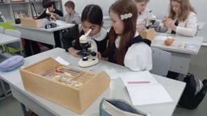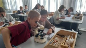 На уроке биологии учащиеся 5-ых классов выполнили лабораторную работу «Приготовление и рассматривание препарата кожицы чешуи лука под микроскопом». Ребята научились изготавливать временные микропрепараты кожицы чешуи лука, пользуясь лабораторным оборудованием «Точки роста». С интересом рассматривали строение клеток через микроскопы, выполняли рисунки, отвечали на вопросы. Выполнив работу, пятиклассники ещё раз убедились в одном из свойств живого — клеточном строении живых организмов.