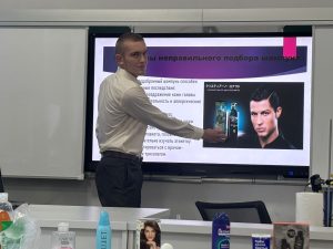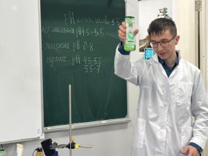 Ученики 11 «Б» «отправились» на выставку ЭКСПО, в павильон «Дисперсные системы». Гид первого павильона Харитонова А. рассказала о многообразии дисперсных систем, их строении и использовании. Во втором павильоне «Барбершоп» учащиеся могли поучаствовать в мастер-классе от мастера (Гадючко К.) и узнать какие пенки и гели подходят для бритья, познакомиться с правилами бритья и уходом за бородой. Отдел рекламы (Савенков А.) провел научные опыты со средствами мужской линии косметики. В третьем павильоне работали мастер салона красоты (Кимбер В.) и косметолог (Ким Д.). Оказалось, что косметические линии девушек включают на много больше компонентов, чем у юношей. Большой интерес вызвала экспериментальная лаборатория. Редькин Д. и Торбеева К. не только рассказали о типах волос, рН среды нашей кожи, но и при помощи прибора Relion «Точка Роста» проверили рН среду разных шампуней и дали рекомендации по индивидуальному использованию данных косметических средств.